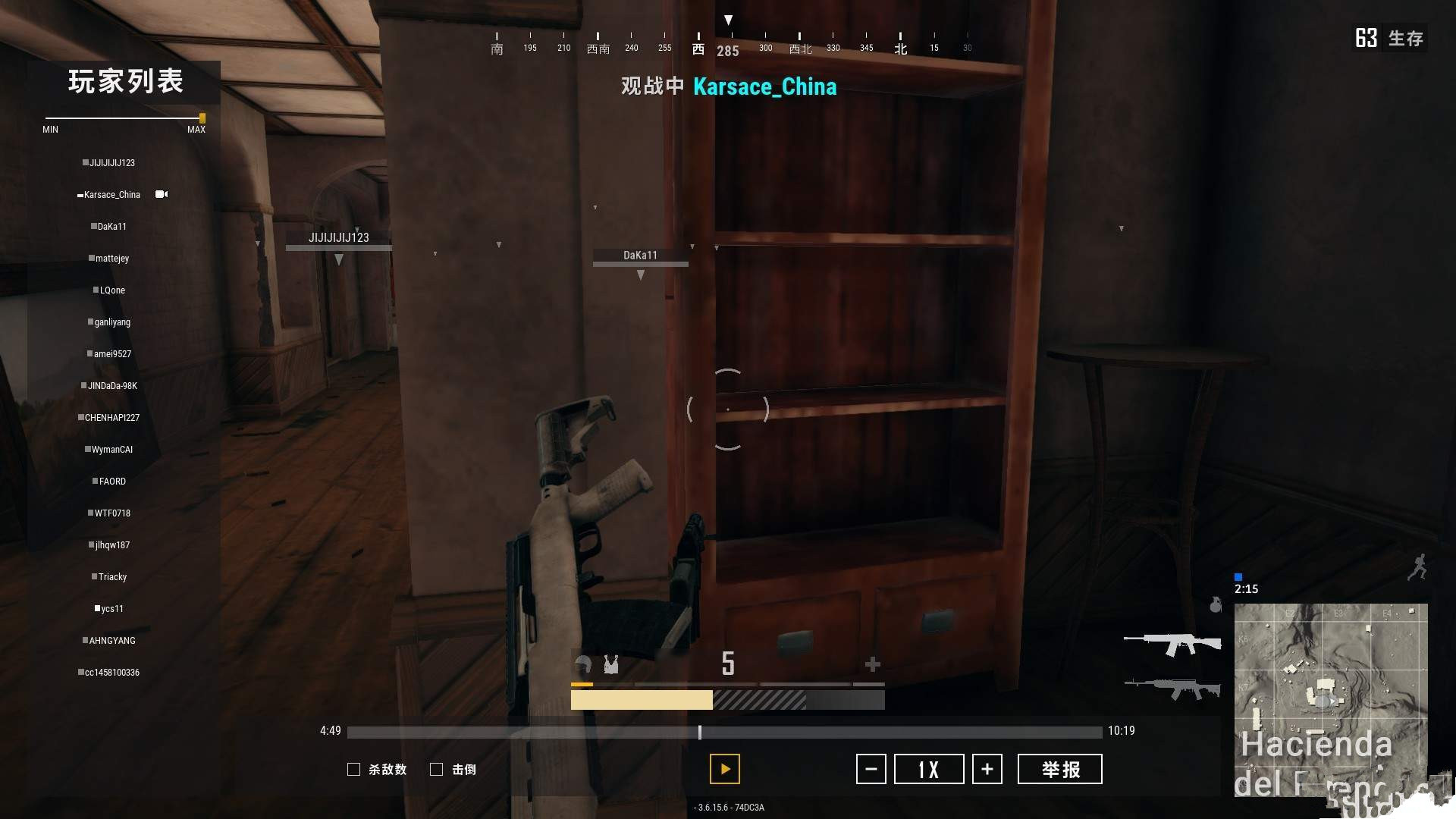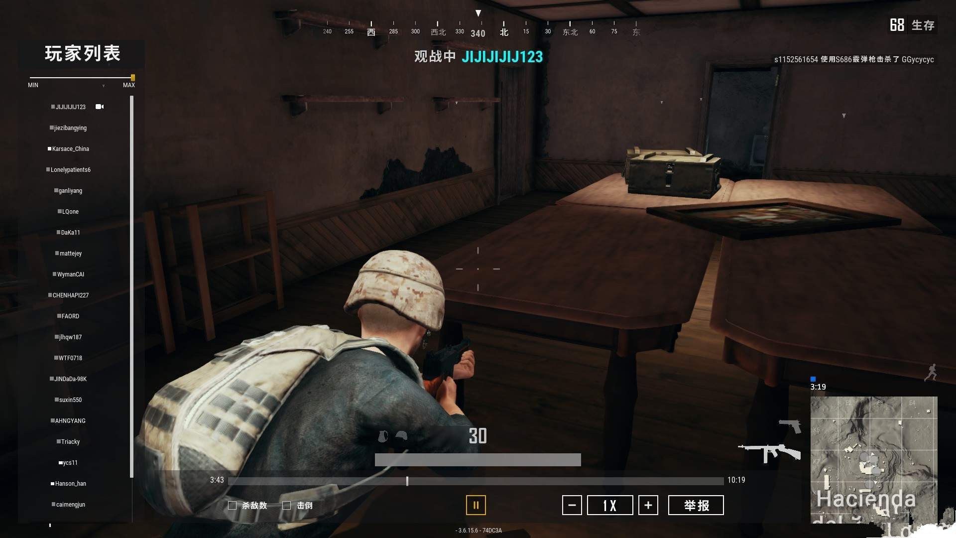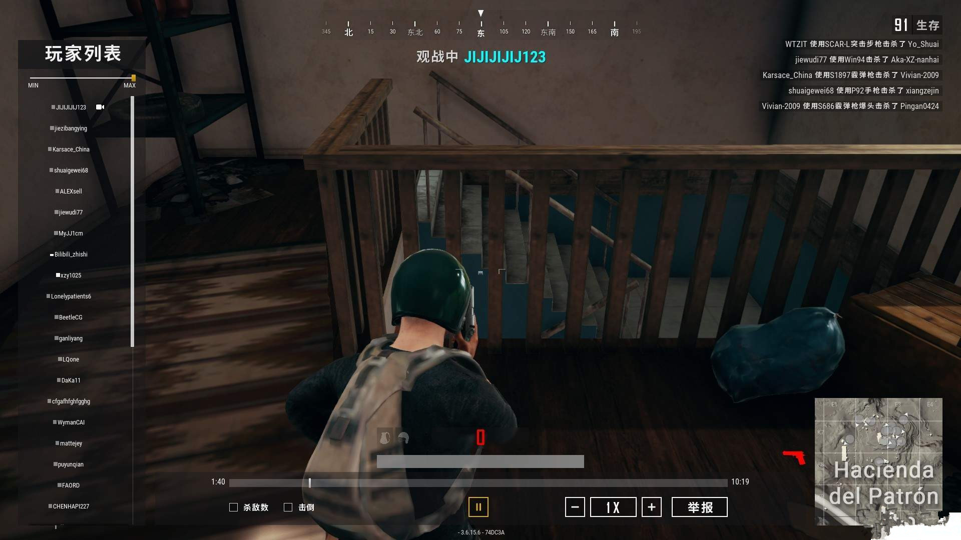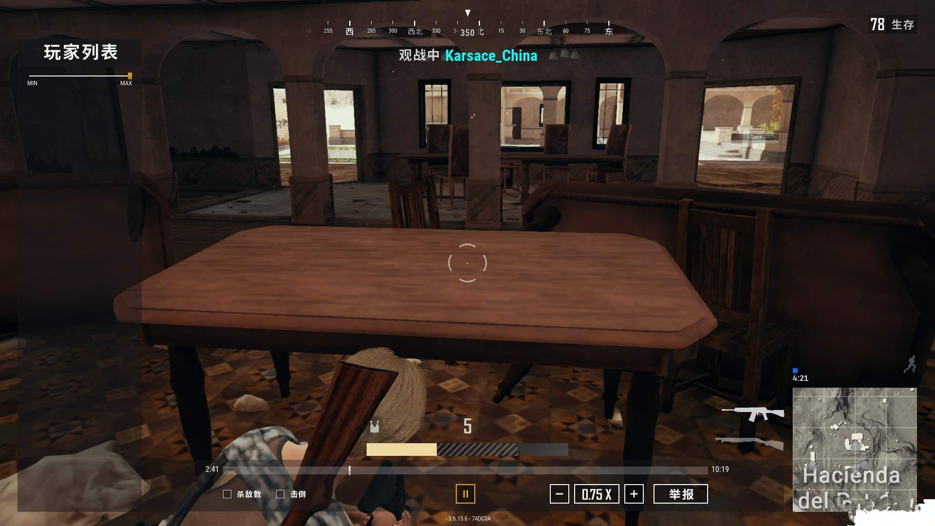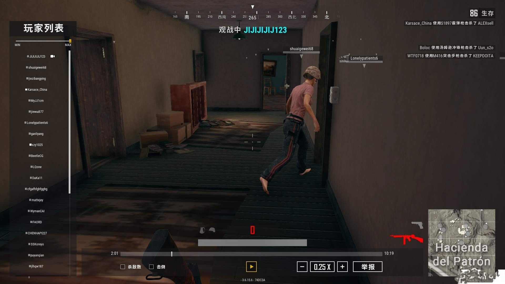 在5,6分钟左右,豪宅大部分的玩家均已被消灭,搜索残余玩家时,注意千万不要在楼内穿梭,建议蹲二楼阳台和在楼外进行搜索。主要的原因就是豪宅的地形实在太复杂,阴人的位置实在太多,而且楼内无法防手雷,视野也不如楼外的宽阔。