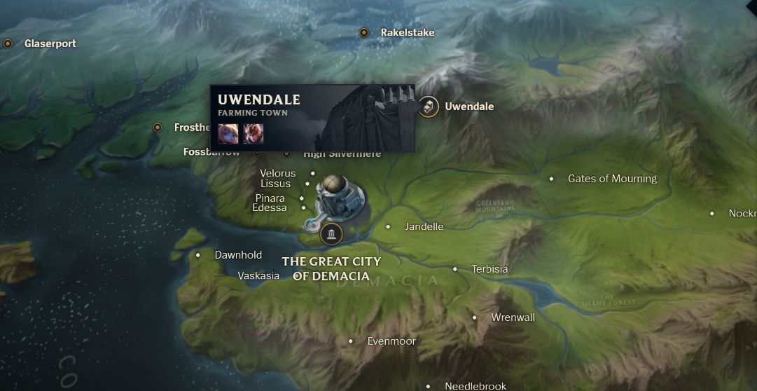 有趣的是这一次的地图直接标注了每一个英雄的具体生活地址/出处,从下图中我们可以看出波比和奎因来自同一个叫做Uwendale的城市。