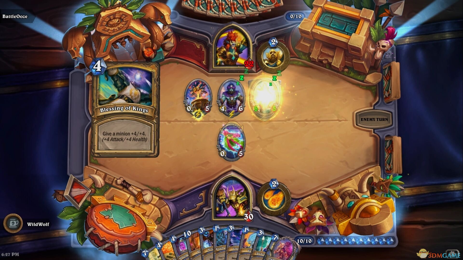 这个3/6只知道是个3/6身材,因为两个英雄只顾着嘴炮,牌一点都没动。
