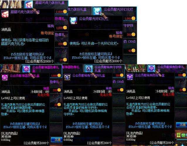 第一个就是勋章。想要成为大佬,这一环是要首先做好的。拿剑魂来说,传说勋章可以带来48点力量与20物攻,面板提升也不用多说。还有守护珠,最强的属强可以+7,提升也是不可小觑。不过这是要靠时间去攒积,每周三双倍奖励,坚持每天肝,两个月拿下,不少的玩家在这个福利当中获得的勋章能够帮助股他们省下一个月的爆肝,真的是非常的划算。第二个就是工会战奖励。最吸引人的是冠军光环,类似于海伯伦光,非常霸气。还可以用赛季结束后的奖励去买深渊票和勋章盒子,开出粉色的几率很大,先带着也不错。粉色也是有几率合出传说勋章的,一发入魂。第三个是各类药剂。最出名的就是增幅和强化秘药,想要高强装备,这个药剂还是必须要有的。再就是50疲劳药,用贡献币兑换,在紧急情况下能够派上用场。第四个就是装扮礼盒。2000个公会币能够换一套巧克力装扮,虽然没有属性,但是粉粉的,花花穿着最好看了,给自己的职业留一套也不是坏处。最后一个就是工会的特殊功能,这要看工会的人数和大小。能够免费传送,建个队伍就可以,代替了瞬间移动药剂。