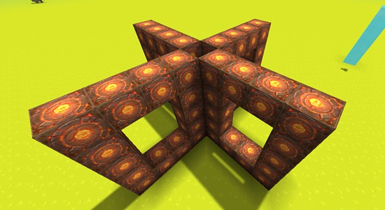 首先用地心门框建4个挨着的地心门,呈十字形,中间留出一格的位置,如下图。