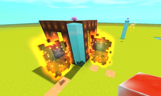 首先用地心门框建4个挨着的地心门,呈十字形,中间留出一格的位置。然后在中心一格放入一桶水,在水面上放朵荷花装饰用。在地心门框中放入地心传送门块,变成地心门。将所有地心门敲掉后,液体水柱就完成了。