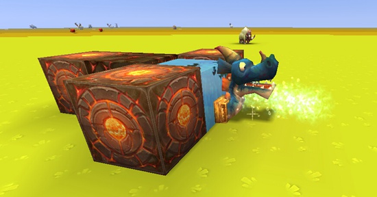 对着后面那个方块的上半部分放一个硫磺晶砂,这样放能保证硫磺晶砂的出风口对着前面;