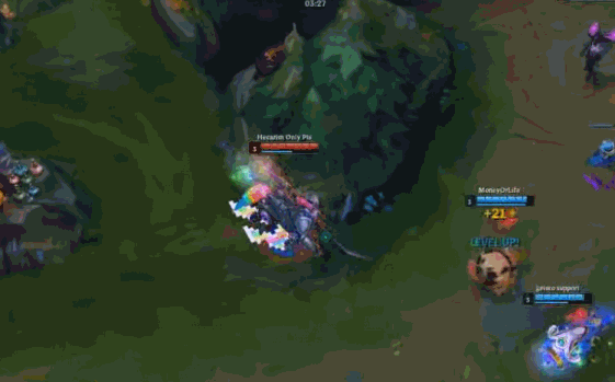 1. E技能蓄力。人马的E技能是位移距离越远伤害越高,因此赫卡里姆开启E技能后可以原地踏步积累伤害,之后一脚踢出去一发入魂。