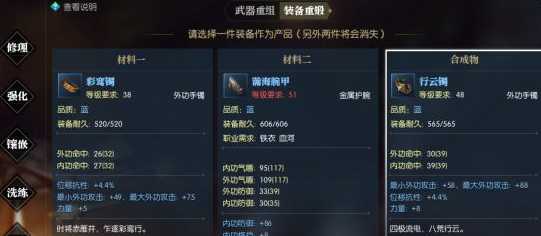 如果装备A的词条1是我们想要的,词条2是我们不想要的。我们又想要词条3,那就去找一件拥有词条3的同部位同等级同品阶装备(狗粮)来与装备A重锻。就有机会合成一件既具备词条1又具备词条3的装备。