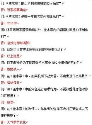 《逆水寒》科举活动答题汇总