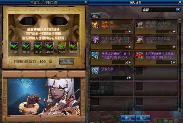 黄金之沙神秘之瞳活动也将在明天更新后下架,同时参与70次的史诗兑换券和100次的强化券也会到期删除,今天还没有用掉的需要快点使用了。兑换商店中的附魔宝珠和锻造炉,深渊票也会删除,而耳环洞悉之眼是永久装备。