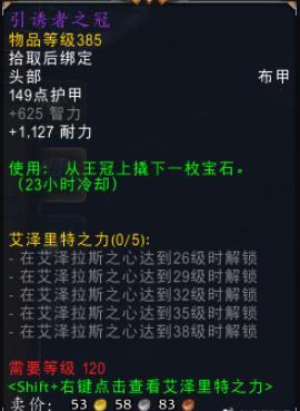 既然暴雪已经这样做也就不在吐槽什么了,在最近一轮曝光幻化装备的蓝贴当中,新增了五套幻化服装,这些装备的获得点都在海盗探险当中。不过这些并不是重点,最吸引人的还得是新增的艾泽里特装备“引诱者之冠”,这件装备和项链一样属于升级物品,但是这个王冠的奖励就特别有意思了,没过23个小时就王冠上抠下一颗宝石,并且可以售卖、使用,相当于人手多了一门珠宝专业。
