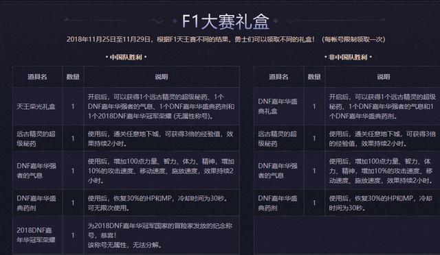 一年一度的DNF嘉年华来袭,消耗疲劳值就可以获得对应的buff加成,同时在聊天窗口内发送"321fight"也可获得Buff。在F1天王赛期间还可以根据最终结果获得不同的奖励,完全是一个小小的福利。同时在活动期间完成决斗场每日任务也可以获得奖励。