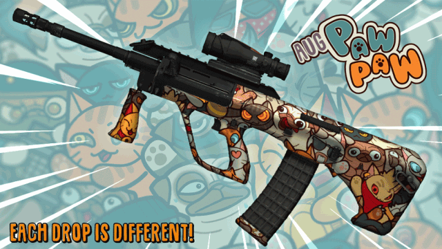 当各式各样的小猫小狗充斥你的荧屏,你还有心作战吗?这个系列的皮肤可谓萌到爆炸,风格各异,造型不一的猫与狗填满枪身,并且图案是半随机的,你可以像挑选宠物一样慢慢挑选,直至找到合你胃口的一款。据作者介绍,这个系列的皮肤,一共采用了52种不同的猫狗造型呢。