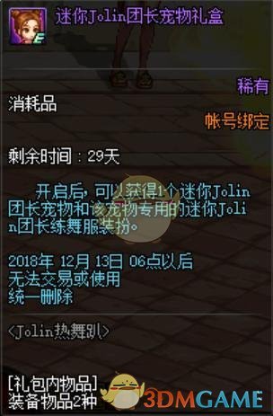DNFJolin热舞趴活动已经上线,玩家想必正在努力获得迷你Jolin团长宠物,该宠物主要通过100个应援棒获得。那么迷你Jolin团长宠物是永久的吗?属性怎么样?小编下面就为大家带来DNF迷你Jolin团长宠物属性介绍,一起来看看吧。