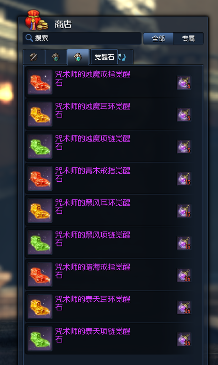 但是仅限前缀为烛魔、黑风、泰天、青木和暗海的首饰可以觉醒。