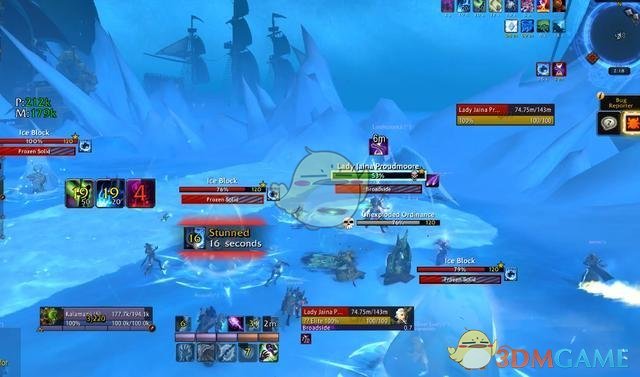 吉安娜冻住水面把船封锁在原地。所有人此时必须离开船只跳到冰面上,而吉安娜则使用她的魔法降低了能见度。玩家必须在躲避龙卷风的同时找到吉安娜,打断她的施法来结束这一阶段。