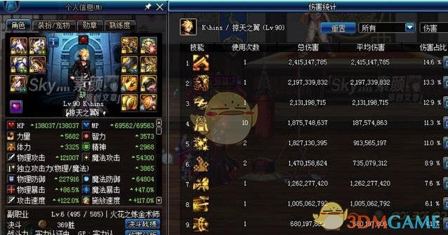 偏一二觉的轻甲、与整体均衡的板甲,按我在前面所测试的[一轮技能伤害占比]来计算,将总伤害设为100%。我的防具是90板B,不存在因技能等级加成而引起的伤害分布变动问题,同时右边所有增加技能等级的配置,均可在95级版本中沿用,所以这个伤害占比是相对客观的。