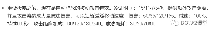 重做了冰魂的3技能,加强了不少冰魂的线上能力。如果主学这个技能,7级的时候冷却时间只有3秒,每隔3秒一次附带155点魔法伤害的普攻,还减速100%并且增加攻击距离。这在前期,追着a对面酱油两下一个大基本就秒了。这个改动,会不会让冰魂有回归中单位置的可能性呢?