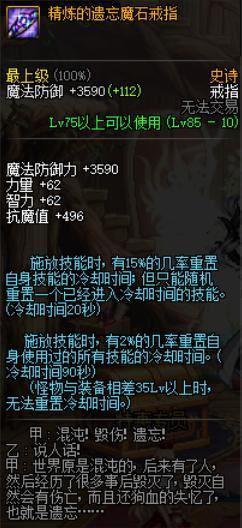 首饰是我最不推荐大家选择的,毕竟85史诗首饰除非是一套可以用用,实际上不如无尽首饰提升的打,所以唯一推荐的就是精炼戒指了,在遇到120级之前的怪物,重置技能都能触发,一个副本多放一次觉醒确实很舒服,喜欢猴的玩家可以点一个。