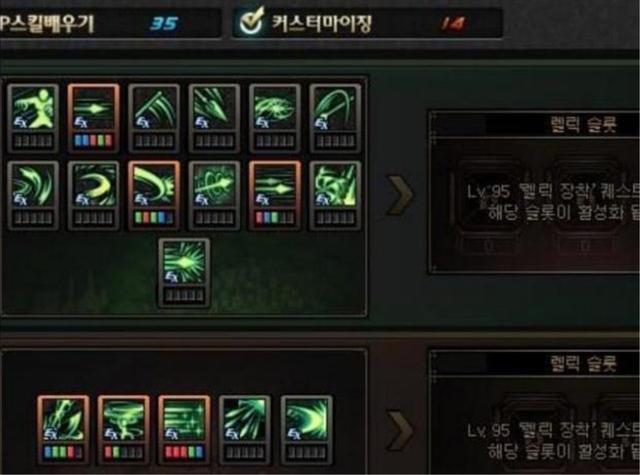 如下图所示,韩服公布的CP技能系统我们可以看到下方有不同颜色的“符文”,符文的颜色不同带来的功效也完全不同。比如红色是增加技能攻击力,蓝色是缩减技能CD,橙色是增加技能范围或者特效等等……