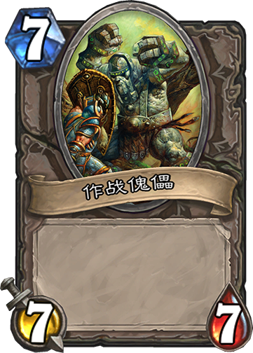 对比其他卡,除了爆炸的特效,还有高贵的野兽属性(野兽吃赫米特当我没说),作战傀儡又一次被完爆了。而就构筑来说,高费的笨重野兽很难在小德的卡组找到位置,特别这是当前版本主要蓝龙、城墙、换家这些防守反击策略,天梯不像竞技场,解牌更多,77身材也不见得站得住,除非新版开发大哥德或者中速德等套路,否者这张卡依然是板凳队员。