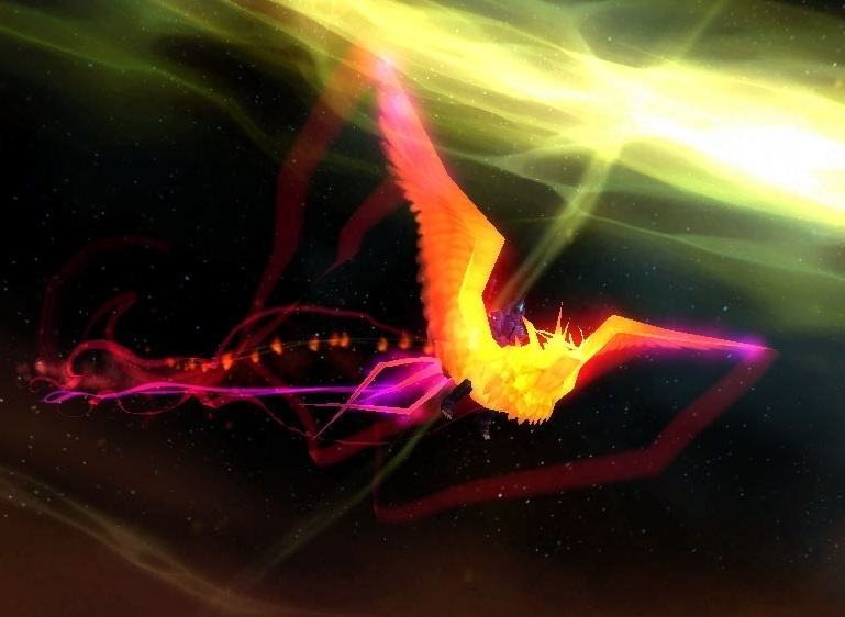 奥的灰烬周身带着耀眼的光芒,在天空留下一道火焰的印记,最富盛名的稀有坐骑之一。在当时也是非常难获得的坐骑领了,需要非常高的价格或者很好的团队。在MOP版本后不少职业可以单刷后,也是不少玩家每周必不可少的去处之一。