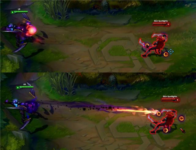 EZQ技能不仅拥有射程远,而且有着弹道速度快的特点,大招也是如此,精准弹幕比寒冰的大冰箭都是要快上许多。正因为如此,ez的Q用来POKE在合适不过,弹道速度越快给对手反应的时间就会越少。
