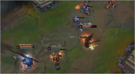 (2)R+E+Q+W+A:火男在团战爆发的一瞬间,队友开团的时候最好的衔接团队伤害的方式就是立刻跟一发R能够在人群中弹弹弹弹走鱼尾纹,让对手瞬间爆炸后接后手技能。