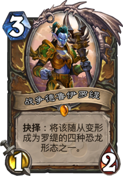 首先是德鲁伊的橙卡,本身只有312的属性,看上去弱爆了,但是有4种抉择,都是变成野兽,分别是314的法伤加1,316的嘲讽,342的突袭和312的剧毒潜行,感觉每一个的效果都不是很好,但胜在灵活。