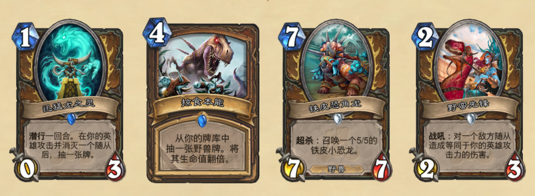 在目前的版本中,亡语猎的玩法一直都是版本的主流。魔暴龙蛋,搭配二王子,冬灵跟一系列带亡语效果的随从,在前期召唤出魔暴龙战斗,中期开始利用暴龙王和魔暴龙打出斩杀。而在新版本中,设计师似乎为这种玩法加入了更多的储备。