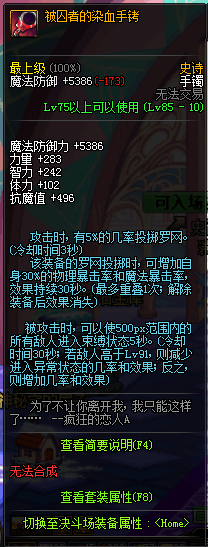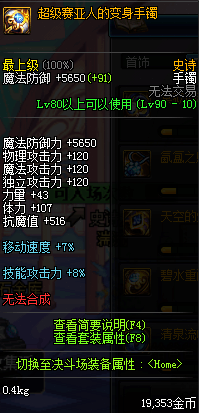 90的传说手镯,增加10%的黄字和爆伤,对于没有黄字和爆伤的玩家这个还是很不错的选择。