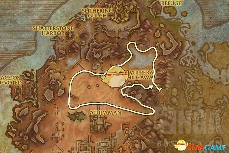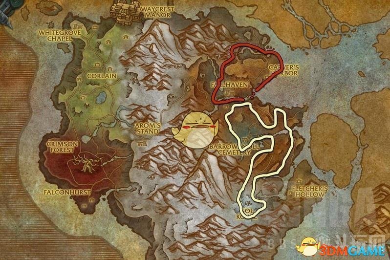 这条路线会绕着联盟的小镇,所以部落玩家会有点蛋疼。不过部落可以往上一些,避开。或者选择第二条路线。
