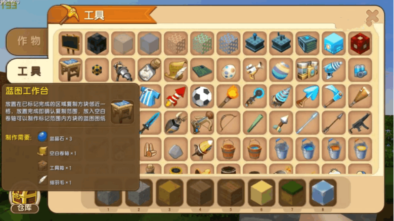 首先就是蓝图工作台的使用不再受到限制,之前蓝图只能在创造模式中使用,而在下个版本中蓝图也可以在冒险模式中使用了!这就是意味着玩家在游戏中只要收集足够的物品,不管什么建筑都能轻松的建造出来。还省去了建造的精力和时间!此外在冒险模式中蓝图和其他工具一样,需要制作才能拥有,制作需要三个蓝晶石和其他杂物,玩家只能去矿洞去碰碰运气了!