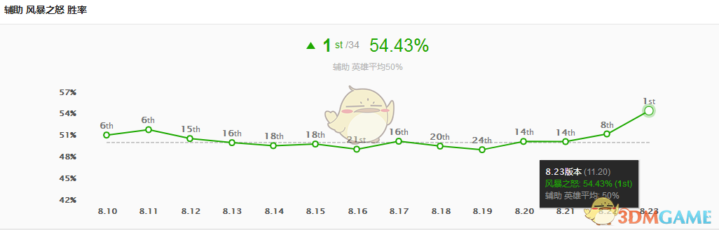 除了上单三雄以外,连目前版本的风女,也凭借着护盾猛击这个符文来到了最强辅助的位置,Tier以及胜率榜双双登顶,表现非常的不错。