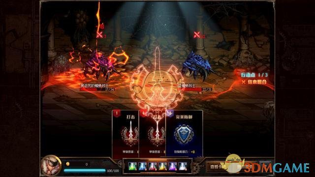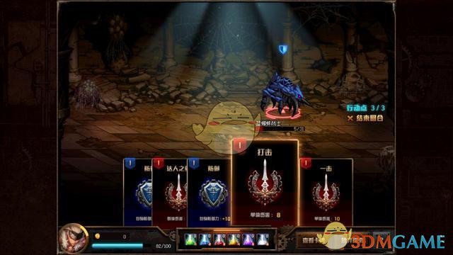 我们点击一个牛头怪物图标会进入战斗界面,战斗没有时间限制,有行动点,我们点击一张卡牌,然后点击怪物就能造成伤害