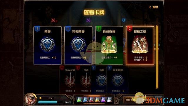 回到游戏界面,我们点击查看卡牌会发现我们有了前面选择的卡牌,这卡牌再下一次游戏中会成为我们的行动卡牌