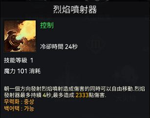 4喷火器,前期非常好的清兵神器,应该说到50级,都有可能伴随玩家的一个技能,前期可以加满点,到50级的时候,相信大家都会洗点一次的。到时候再换成其他就可以,一层选择暴击,2层选择距离,3层选择蓝色火焰,加大伤害同时,时间也缩短,稍微灵活了点,当然你可以随时中断,这个一个长按技能。