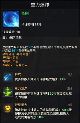 ,第一层点集体攻击,多个敌人的时候伤害增加30%,第二层点重力漩涡,增加伤害速度,三层点上行星重力,增加范围的同事增加伤害。一个字,强。