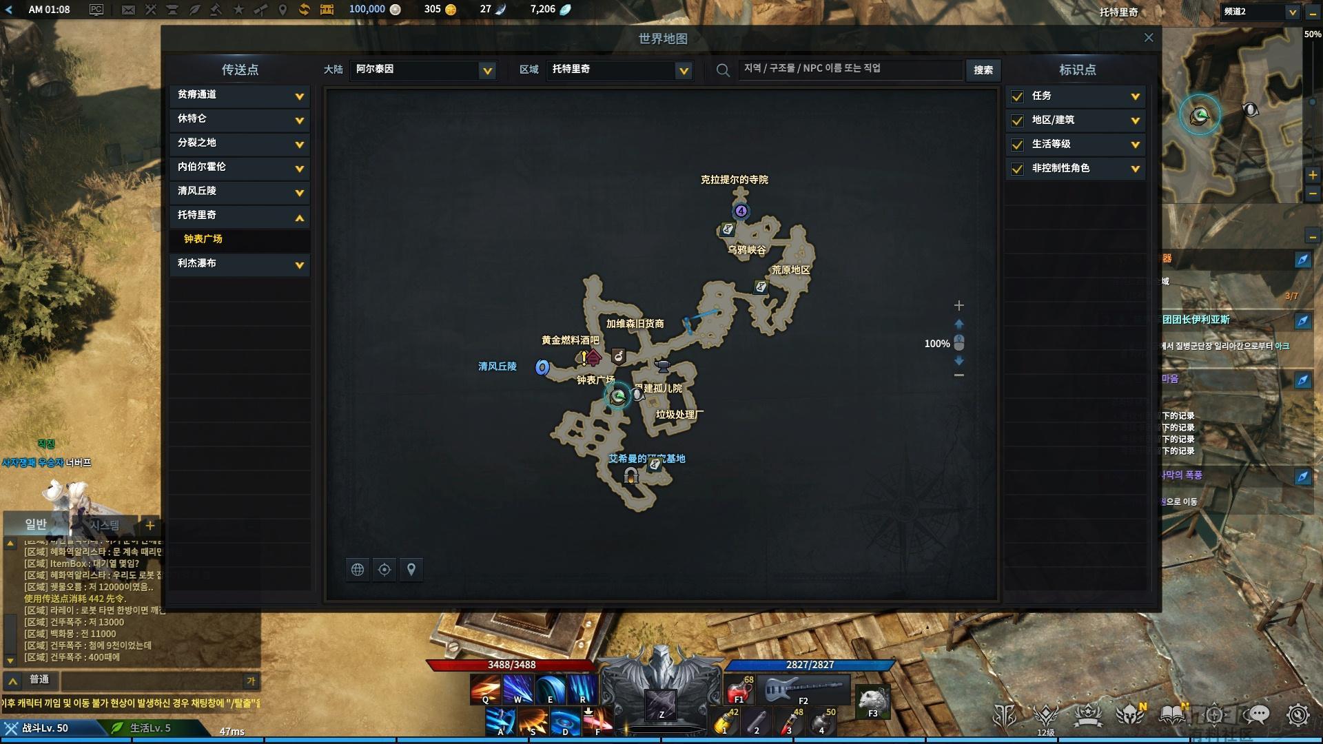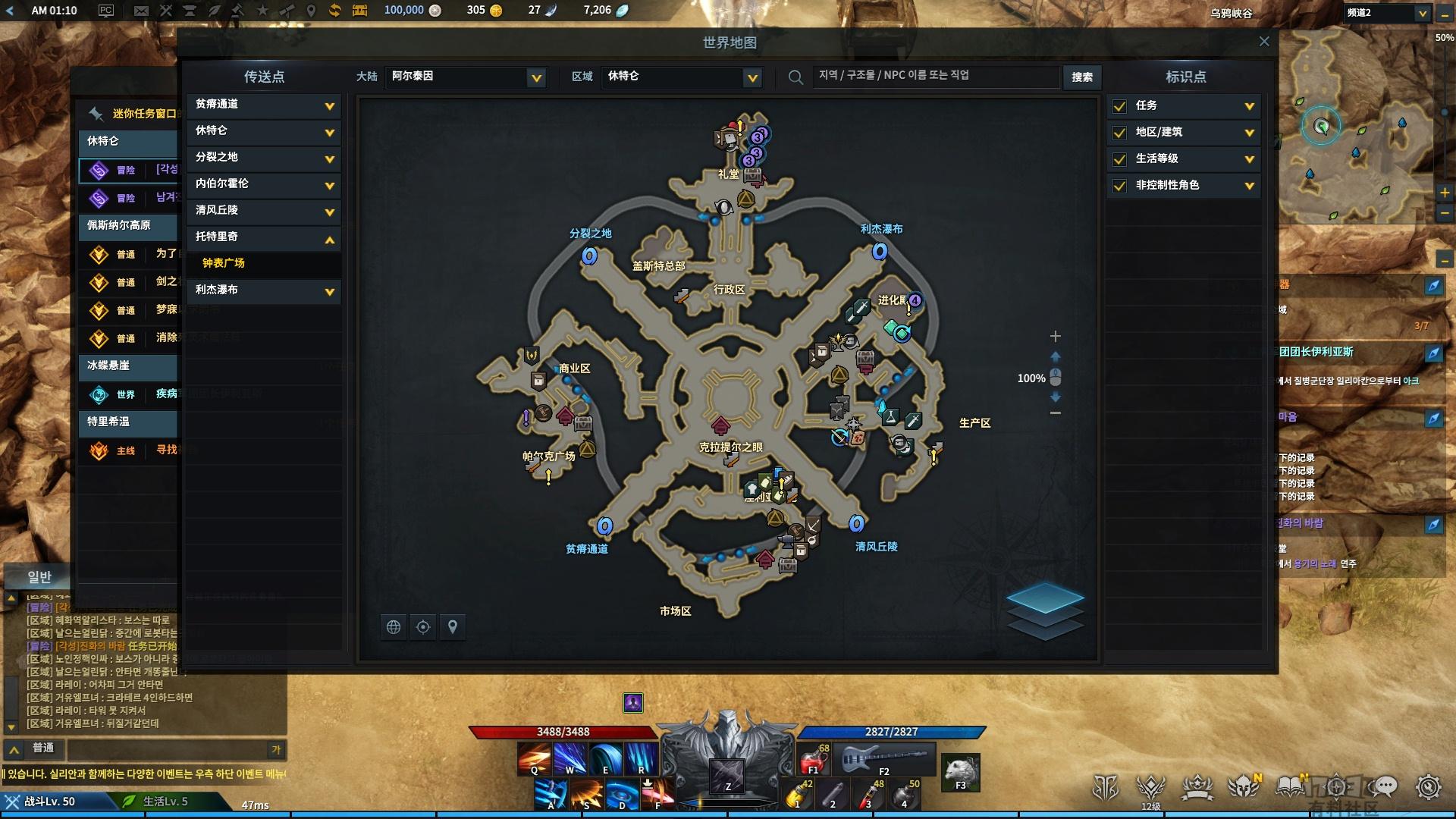 然后继续做任务,传送到利杰瀑布