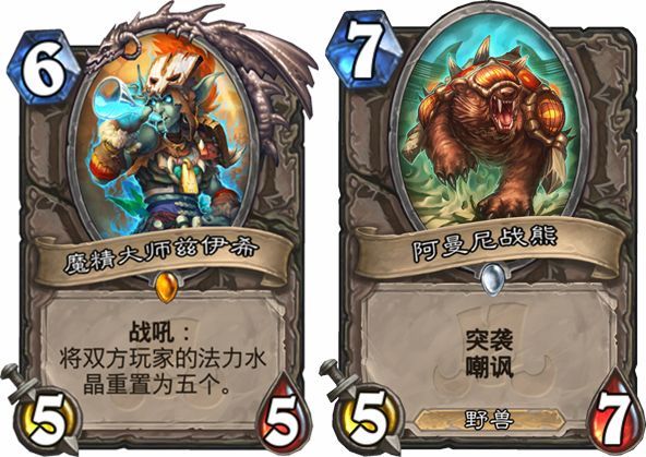 Giovanni:我喜欢那种卡牌效果非常诡异的,就是那种一看到之后会不知道是加分还是减分效果的卡牌。所以我喜欢的是魔精大师兹伊希,这效果乍看之下我不知道到底是对我有利还是对对方有利。但就我个人的话,以《魔兽世界》玩家角度来讲,我最喜欢的是阿曼尼战战熊,它可能不强,但我很喜欢战熊,《魔兽世界》坐骑也是战熊,所以当时就跟团队说:一定要放战熊进去!