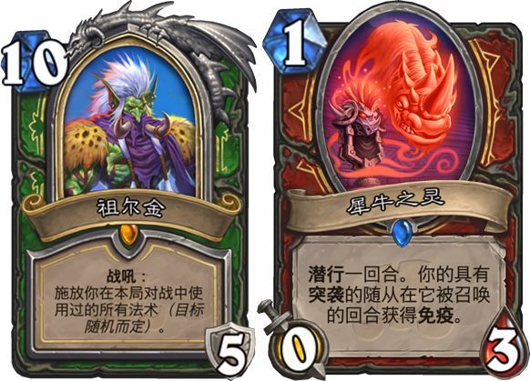 Peter:坦白说,毕竟拉斯塔哈的大乱斗还没有正式上线,所以还没办法知道在使用上是否有太强或太弱的情况。目前我们有看到的是,像是在最近才公开的祖尔金,他在影片当中是很震撼的登场方式,对此我们都有看到很多很正面的回应,玩家对某些卡牌很兴奋很期待,另外像是犀牛之灵,玩家看到就觉得这卡牌出来,对战士职业来说不是太OP了吗。现在有这样的反应出现,但是在资料片上线之前都还不准,毕竟还有很多卡牌没有公开,而且实际上线之后要怎么组合、有什么效果都要等玩家慢慢发觉,才可以观察出是否有哪些卡牌太强或太弱。