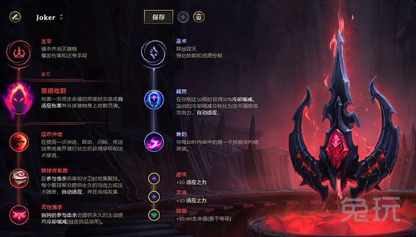 辅助位小丑的符文点法其实和其他的黑暗收割英雄是非常类似的,仅在细节点法上有所不同。