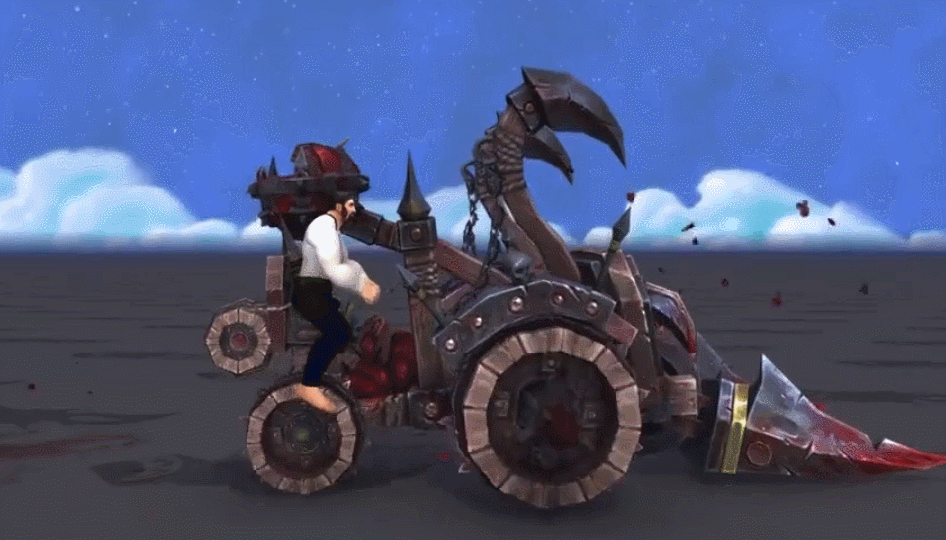 当按下空格键的时候绞肉车会跳起来,还能看到有肉被甩出来,效果非常的逼真。国服上线以后,红色的肉变成黑色,感觉就好像是这个绞肉车漏油了,甩出来的是石油。