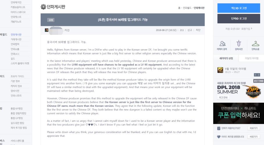 就在史派克最为焦头烂额的时候,知道90B能升95B后韩服玩家那边又开始闹了起来,他们不满韩服的DNF永远做国服DNF的体验服。游戏日报小游君觉得韩服玩家可能还没有明白国服玩家会这么暴躁的根源在哪里,韩服的装备打孔都在时装上,这是一劳永逸的,而国服换一次装备就得全部从头打造,附魔宝珠几百块一个,灿烂徽章等东西都可遇不可求。