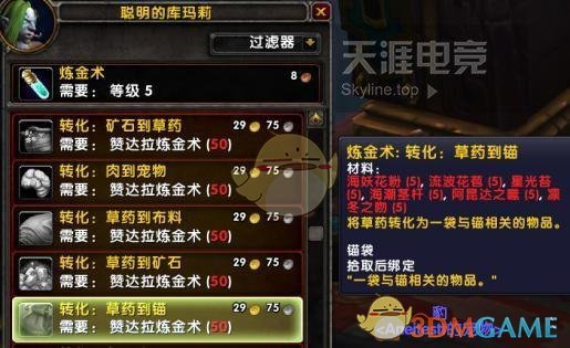 炼金新的转化,和之前的转化需要的等级一样,估计CD和产出的量也类似。