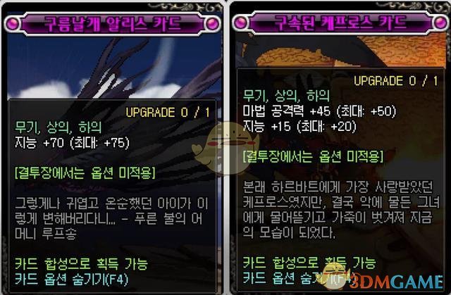 这里一共有四种卡片,需要在泰波尔斯副本中获取,如果没有b套等毕业装备,想要通关极其困难,所以初期这个地下城卡片爆率应该不低。四种卡片属性分别是体力75点,智力75点,魔攻50加20点智力,物攻50加20点力量,四维卡是奶爸和奶妈的毕业附魔选择,攻击力卡片跟卡恩不相上下。