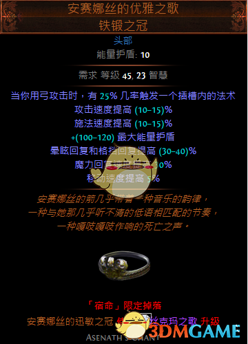 这是一个很普通的弓,T2攻速,T2暴击率,附带暴击时释放辅助,+1宝石等级
