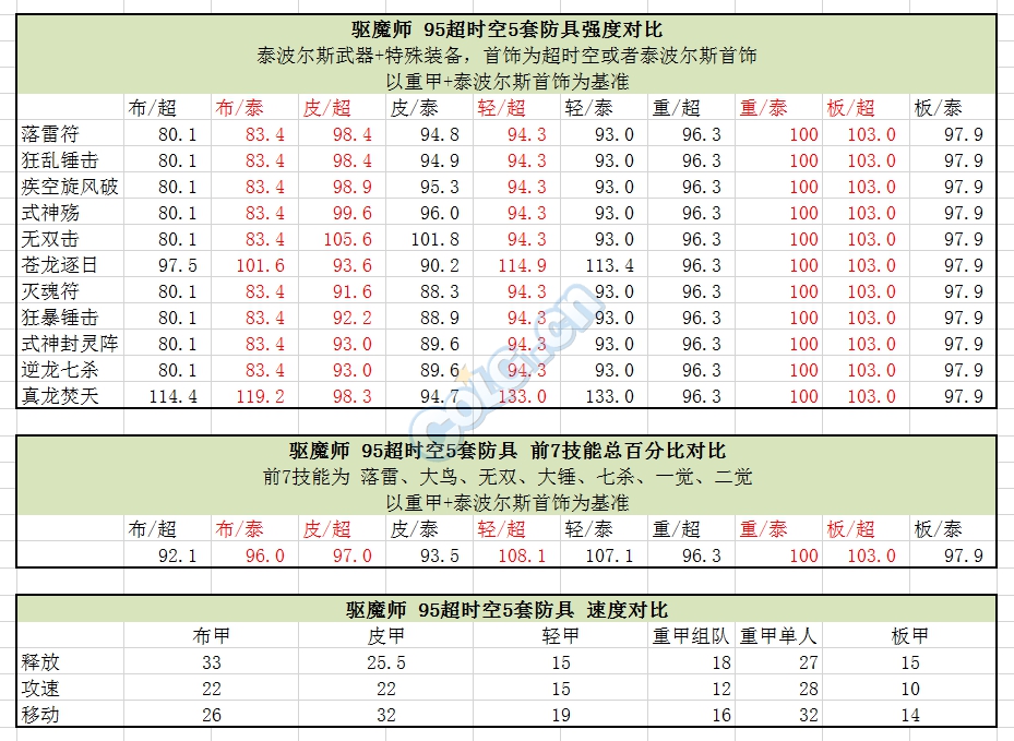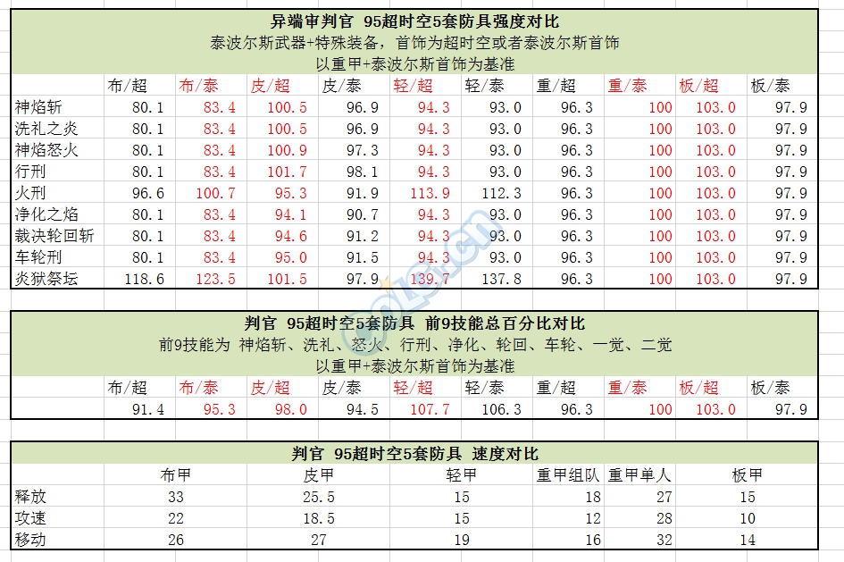 之前计算过泰波尔斯首饰条件下的95版本5套超时空防具对比。