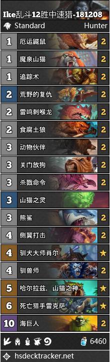 Ike乱斗12胜中速猎,卡组带了山猫之灵和山猫之神,配合海巨人完成展开