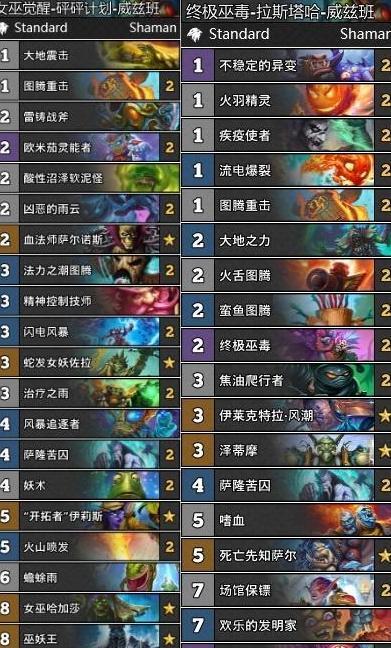 6.萨满:女巫觉醒是带了沙德沃克却不带撼世者和吸血蚊的“渣吼萨”,会被老版本的战吼萨完爆,不知道有啥意思。不过卡组强度不错,用这套卡组打到10级问题不大。终极巫毒就是带了1张嗜血的进化萨,终极巫毒可以给随从加亡语,死亡后变成加1费的随从。这个就是进化的亡语版法术,配合泽蒂摩可以同时给自己3个随从加这个亡语。如果你用泽蒂摩和不稳定的异变把3个随从进化到大哥级别,再上终极巫毒的话,对手解也不是,不解也不是,就尴尬了。不管怎么样,能在天梯上看到进化萨小编还是很高兴的。额,也许还能看到美女的血盆大口。