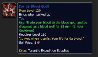 使用:将你的鲜血献给血神,并伪装成一个鲜血巨魔持续15分钟(1小时冷却)。