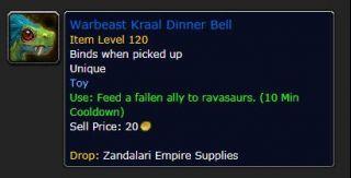 使用:把一个死去的盟友喂给迅猛龙。(10分钟冷却)