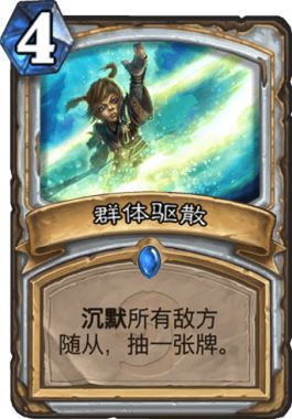 这张牌代替了灭的位置,但对于我们牧师来说这张牌也算是一张比灭更优质的卡牌,减少随从的攻击力,附带一定量站场,其次还能减少我们的法术池,增加了我们寻找斩杀或者是解场的重要卡牌,必带不可!
